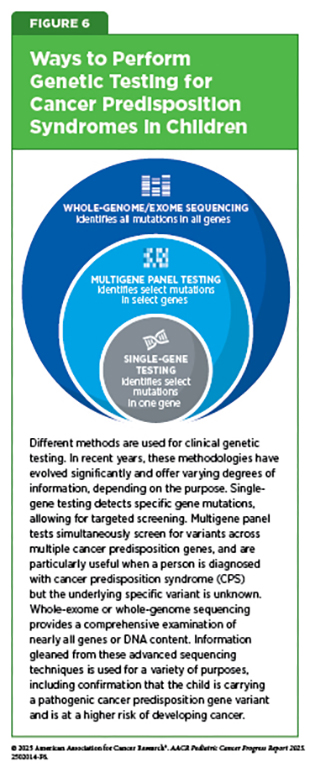 Another concern pertains to children’s risk of developing second primary cancers, either due to treatment of the primary cancer or because of a CPS. Although this risk is known, continued research can further help identify and refine surveillance strategies that will be most effective for this population (231)Kratz CP, et al. (2024) Clin Cancer Res, 30: 1733..