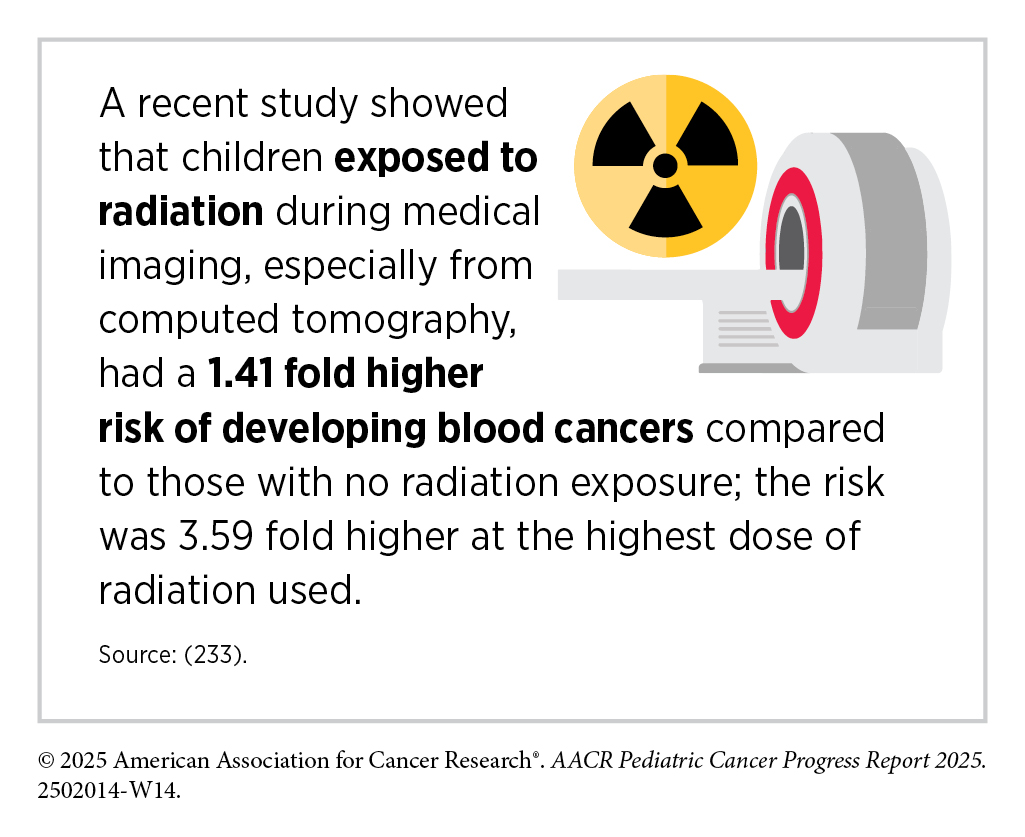 While structured surveillance protocols are beneficial for children with CPS, one of the key remaining concerns is radiation exposure of children as a result of surveillance protocols, many of which require imaging approaches involving radiation. The 2023 AACR PCWG update emphasizes the use of MRI (especially whole-body MRI) and ultrasound whenever possible, with the sparing use of CT for specific indications and syndromes. Recent studies have provided strong evidence to spare the use of CT when possible. In a study of nearly one million children, adolescents, and young adults who received computed tomography, those who received very high exposure to radiation had a 2.66-fold higher risk of blood cancers later in life, compared to those with very low exposure (232)Bosch de Basea M, et al. (2023) Nat Med, 29: 3111.. These principles should also be considered when imaging these patients for indications unrelated to cancer (218)Voss SD, et al. (2025) Clin Cancer Res, 31: 3638..