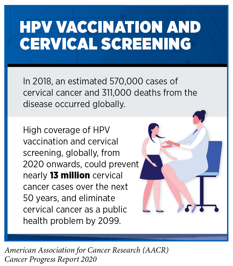 Until recently, cervical cancer was the most common HPV-related cancer in the United States. However, the incidence of HPV-related oropharyngeal and anal cancers has been increasing and oropharyngeal squamous cell carcinoma was recently reported to have become the most common HPV-associated cancer in the United States (237)Van Dyne EA, Henley SJ, Saraiya M, Thomas CC, Markowitz LE, Benard VB. Trends in Human Papillomavirus–Associated Cancers — United States, 1999–2015. MMWR Morb Mortal Wkly Rep [Internet]. 2018;67:918–24.(238)Deshmukh AA, Suk R, Shiels MS, Sonawane K, Nyitray AG, Liu Y, et al. Recent Trends in Squamous Cell Carcinoma of the Anus Incidence and Mortality in the United States, 2001–2015. JNCI J Natl Cancer Inst [Internet]. 2019 [cited 2020 Jul 1];. There are, however, no formal screening tests for oropharyngeal or anal cancers. Therefore, developing effective strategies to increase the uptake of HPV vaccines could have immense public health benefits. In this regard, a recent study reported that protection provided by a single dose of the HPV vaccine is as durable as protection from the two-dose regimen (239)Rodriguez AM, Zeybek B, Vaughn M, Westra J, Kaul S, Montealegre JR, et al. Comparison of the long‐term impact and clinical outcomes of fewer doses and standard doses of human papillomavirus vaccine in the United States: A database study. Cancer [Internet]. John Wiley & Sons, Ltd; 2020 [cited 2020 Jul 1];126:1656–67.. A single shot regimen can potentially improve vaccination rates and reduce health care and associated costs. Ongoing research is also needed to identify effective communications strategies that allow physicians to encourage HPV vaccination with successful implementation. It has been documented that an assertive rather than a passive approach by physicians while raising the issue of HPV vaccination with parents may increase vaccination in young adolescents, although recent reports indicate that some doctors do not follow this approach (240)(241)Kempe A, O’Leary ST, Markowitz LE, Crane LA, Hurley LP, Brtnikova M, et al. HPV Vaccine Delivery Practices by Primary Care Physicians. Pediatrics [Internet]. American Academy of Pediatrics; 2019 [cited 2020 Jul 1];144.. Another policy that may increase vaccination uptake is HPV immunization school-entry requirements. According to a recent report, three U.S. jurisdictions with such requirements had higher levels of vaccination initiation compared with jurisdictions in the same region without any requirements (242)Ko JS, Goldbeck CS, Baughan EB, Klausner JD. Association Between Human Papillomavirus Vaccination School-Entry Requirements and Vaccination Initiation. JAMA Pediatr [Internet]. 2020 [cited 2020 Jul 1];.