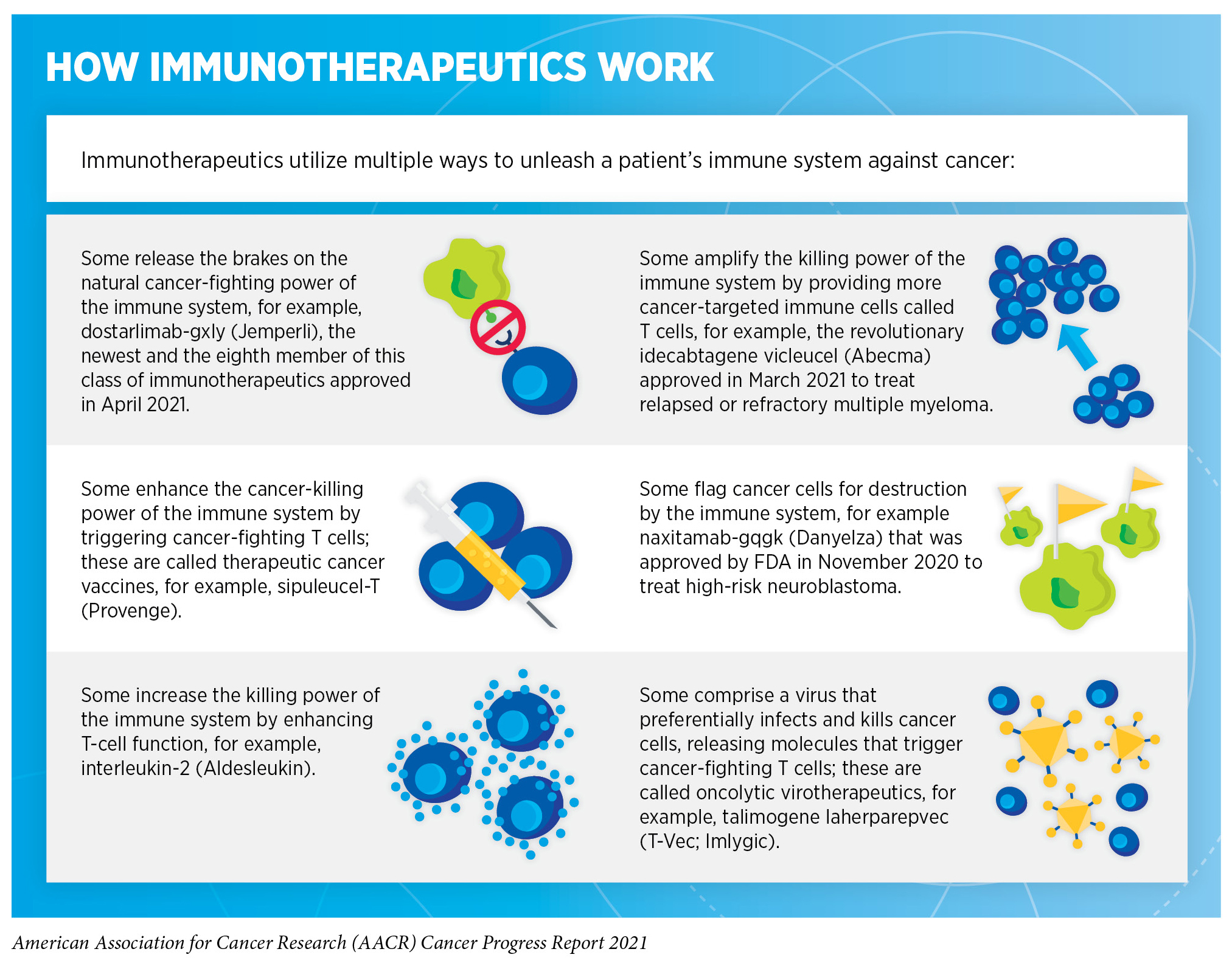 Here, we focus on the FDA approvals of new immunotherapeutics and the expansions of the previously approved immunotherapeutics for use against additional types of cancer between August 1, 2020 and July 31, 2021, the 12-months period covered in this report (see Table 5).