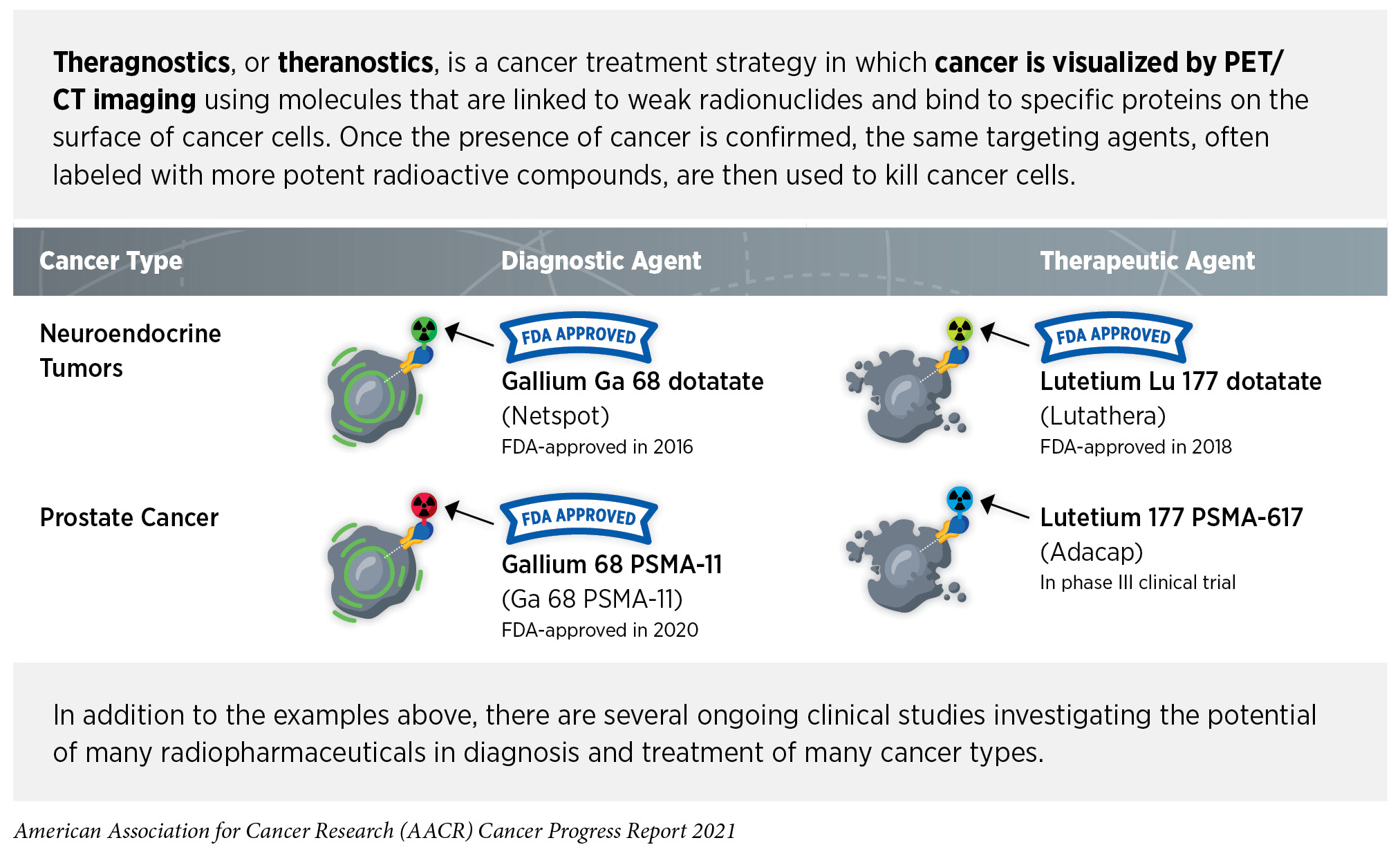 In May 2021, FDA approved another radioactive agent, piflufolastat F 18 (Pylarify), that also targets PSMA to detect prostate cancer lesions that can be imaged by PET. Like Ga 68 PSMA-11, piflufolastat F 18 is a short peptide attached to a radionuclide and is administered in the form of an intravenous injection. Knowledge gleaned from the procedure can be used to make individualized informed decisions about the course of treatment.