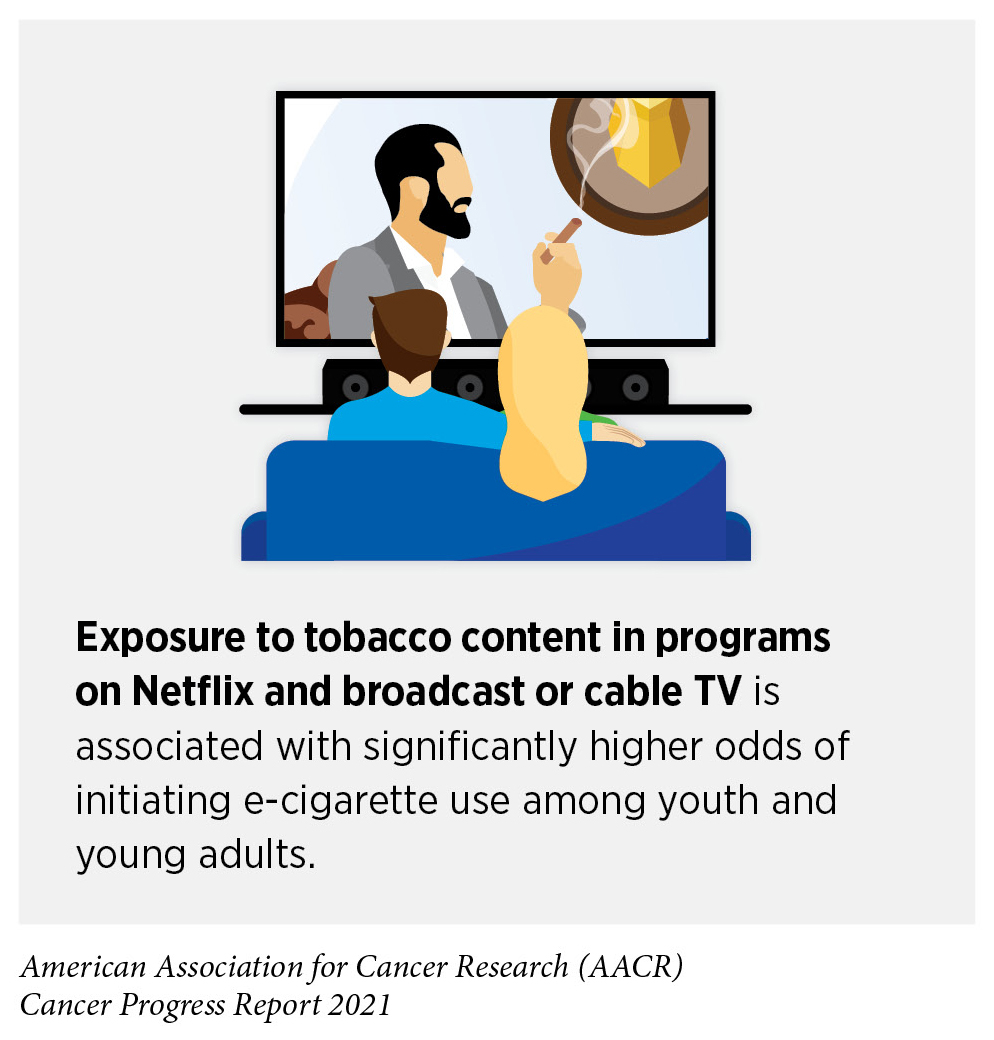 Thanks to the implementation of nationwide comprehensive tobacco control initiatives, cigarette smoking among U.S. adults has been declining steadily (201)U.S. Department of Health and Human Services. The health consequences of smoking – 50 years of progress: a report of the Surgeon General. Atlanta, GA: U.S. Department of Health and Human Services, Centers for Disease Control and Prevention, National Center for Chronic Disease Prevention and Health Promotion, Office on Smoking and Health, 2014.. In 2019, which is the most recent year for which such data are available, 14 percent of U.S. adults ages 18 and older smoked cigarettes, a significant decline from 42.4 percent of adults in 1965 (23)Cornelius ME, Wang TW, Jamal A, Loretan CG, Neff LJ. Tobacco Product Use Among Adults — United States, 2019. MMWR Morb Mortal Wkly Rep. Published online 2020.(201)U.S. Department of Health and Human Services. The health consequences of smoking – 50 years of progress: a report of the Surgeon General. Atlanta, GA: U.S. Department of Health and Human Services, Centers for Disease Control and Prevention, National Center for Chronic Disease Prevention and Health Promotion, Office on Smoking and Health, 2014.. Cigarette use has also declined among U.S. youth, especially over the past decade (21)Meza R, Jimenez-Mendoza E, Levy DT. Trends in Tobacco Use Among Adolescents by Grade, Sex, and Race, 1991-2019. JAMA Netw open. 2020;3(12):e2027465.. However, nearly 51 million adults and 4.5 million middle and high school students in the United States were still using some type of tobacco product in 2019 and 2020, respectively (23)Cornelius ME, Wang TW, Jamal A, Loretan CG, Neff LJ. Tobacco Product Use Among Adults — United States, 2019. MMWR Morb Mortal Wkly Rep. Published online 2020.(202)Gentzke AS. Tobacco Product Use Among Middle and High School Students — United States, 2020. MMWR Morb Mortal Wkly Rep. 2020;69(50):1881-1888.. It has been documented that most adult users initiate smoking in their youth. Recent studies corroborate these findings further showing that among youth who were previously nonsusceptible to cigarette use, many initiate smoking between ages 16 and 18 years although the age at initiation varies by sex and race or ethnicity (203)Pérez A, N’Hpang RS, Callahan E, et al. Age at Initiation of Cigarette Use in a Nationally Representative Sample of US Youth, 2013-2017. JAMA Netw Open. 2021;4(2).. Recent data also suggest that the age of smoking onset may be shifting upward from youth to young adulthood. According to a new report, the proportion of smokers who initiated smoking in their early adulthood, between ages 18 and 23 years, more than doubled between 2002 and 2018 (204)Barrington-Trimis JL, Braymiller JL, Unger JB, et al. Trends in the Age of Cigarette Smoking Initiation Among Young Adults in the US From 2002 to 2018. JAMA Netw open. 2020;3(10).. Collectively, these data reinforce the fact that smoking prevention efforts targeting youth and young adults are vital and may have significant, long-term positive impact on smoking-related health outcomes.